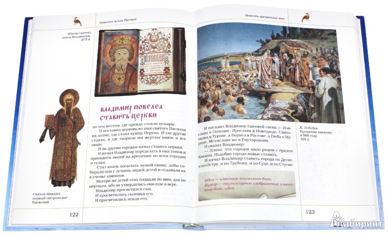 2)"Повести земли Русской" в перессказе детской писательницы Ирины Токмаковой. Этот раздел полностью повторяет книгу с таким же названием,вышедшей в серии "Русский народ" издательства "Олма Медиа Групп", но оформление несколько другое. И бумага - здесь офсет,а там мелованная.