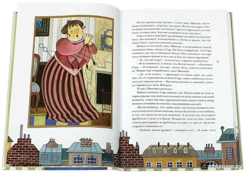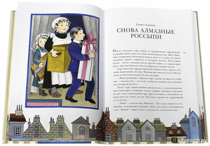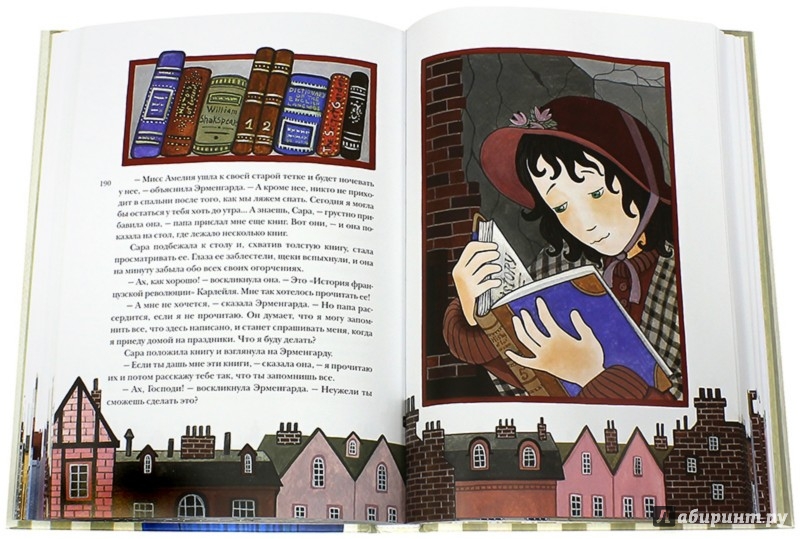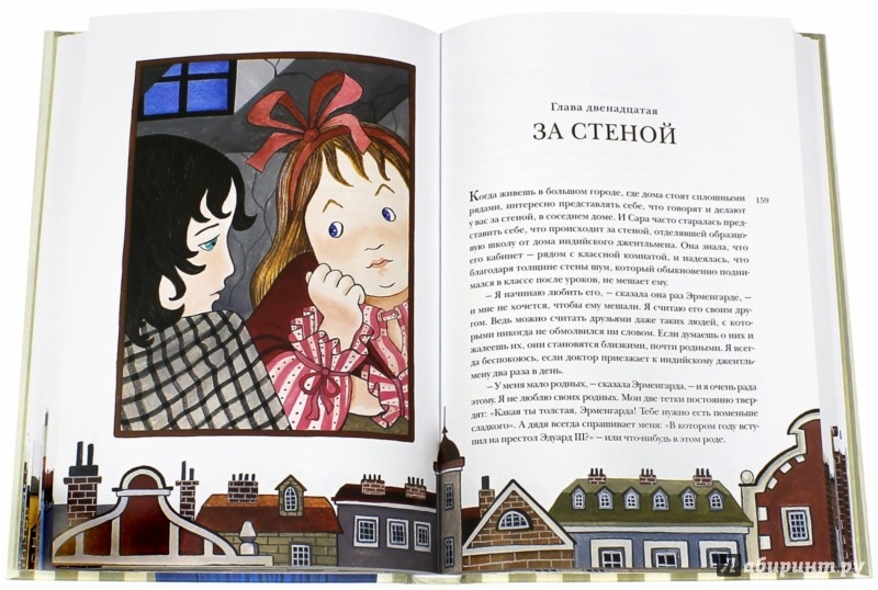 Героиня повести известной американской писательницы Фрэнсис Бёрнетт (1849-1924) Сара Кру - девочка из богатой семьи. Для неё покупают всё самое лучшее - самые лучшие игрушки, самую красивую одежду, самые вкусные лакомства. Но внезапно роскошная жизнь маленькой Сары заканчивается, и начинается новая, полная страданий и лишений. Но Сара Кру - благородная девочка с добрым и любящим сердцем - мужественно и терпеливо справляется с трудностями, выпавшими на её долю.