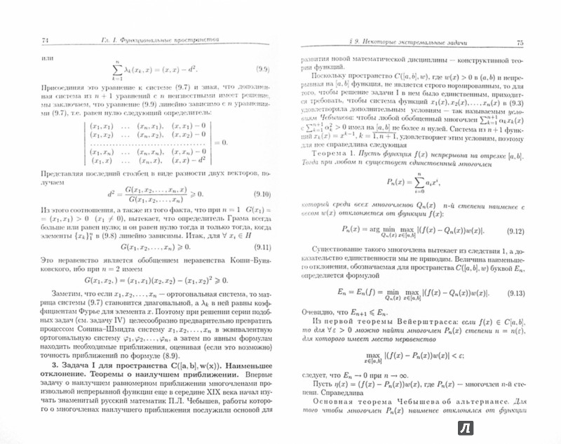 Сочетание слов "Функциональный анализ" в названии несколько неточно, вернее говорить об элементах функционального анализа (поскольку книга такого объема не может вместить настолько большой раздел — сравните с книгами Пугачева или Богачева по функану). Описаны основные моменты, которые помогают лучше понять связь функционального анализа и методов вычислительной математики: итерационных и их оптимизация, спуска, Ньютона.
