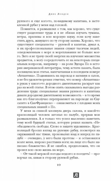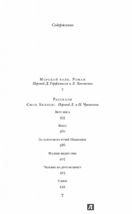 В романе "Морской волк" противоречивая фигура Волка Ларсена, капитана промысловой шхуны, жестокого и циничного моряка, способного легко убить человека - но вместе с тем одинокого философа, поклонника Теннисона и Шекспира - раскрывается на фоне описанных с большим мастерством и любовью опасных морских странствий. В увлекательных рассказах о золотой лихорадке Клондайка из циклов "Смок Беллью" и "Смок и Малыш" аляскинских старателей ждут самые разнообразные приключения, иногда забавные, иногда опасные и трагические. Но в любых обстоятельствах, от гонок на собачьих упряжках до плена у индейцев, герои не теряют мужества и присутствия духа.
