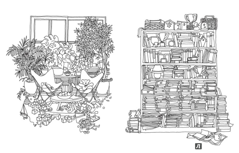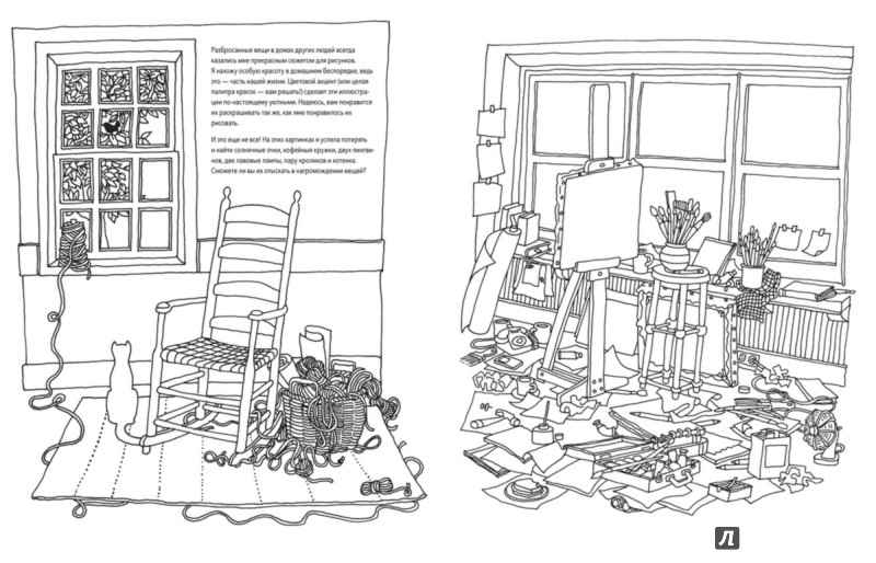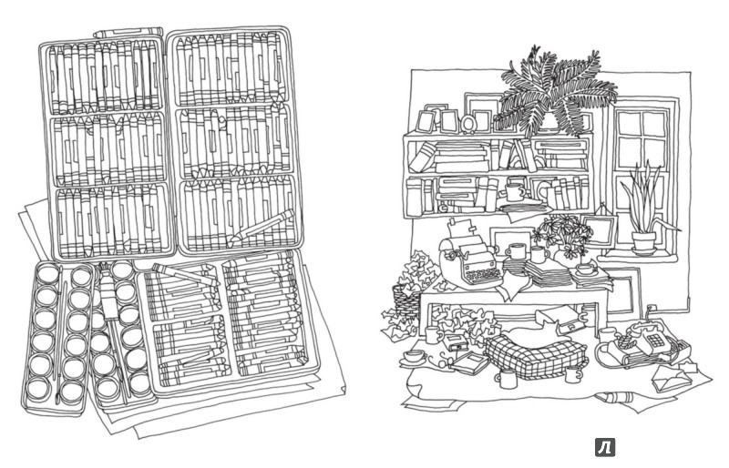 Иллюстрации к "Творческий беспорядок. Раскраска с любовью к мелочам жизни"