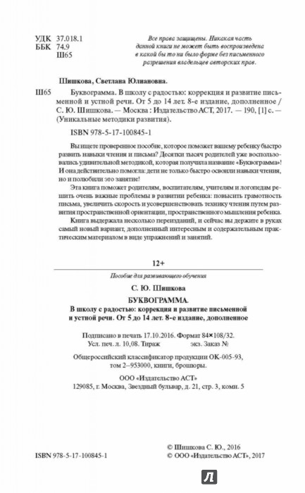 Буквограмма. В школу с радостью. Коррекция и развитие письменной и устной речи. От 5 до 14 лет