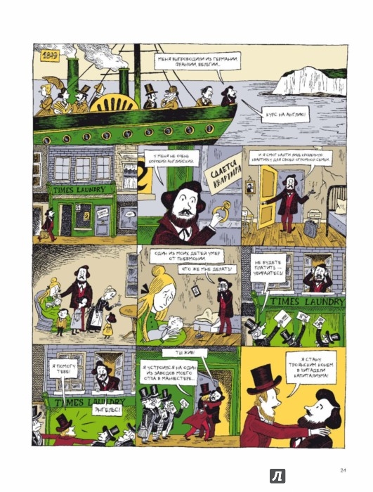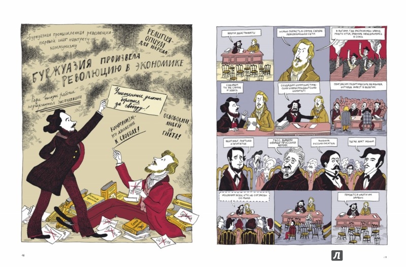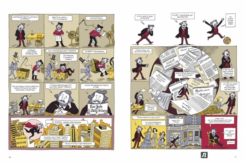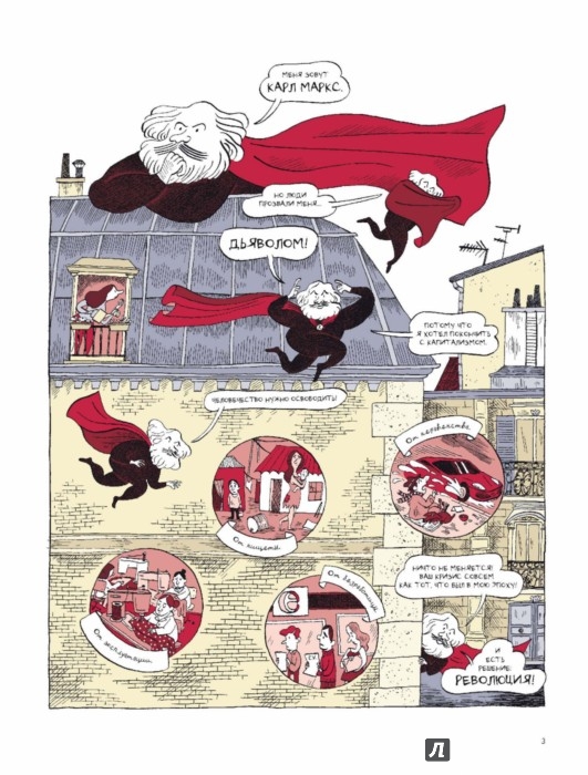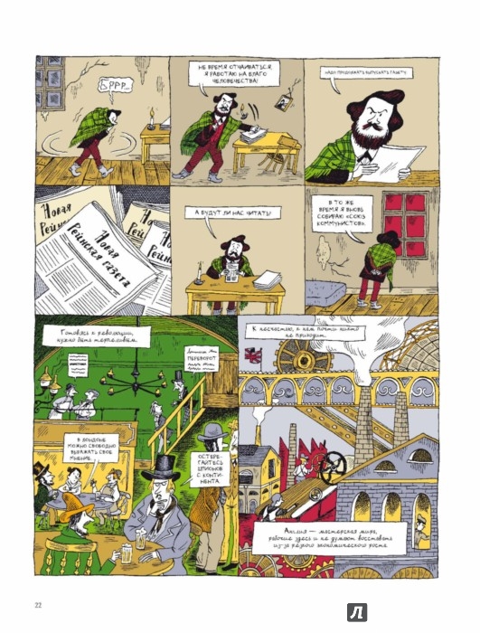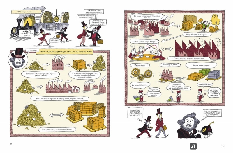 Об этом страшно говорить, но идеи Маркса снова актуальны. Вот, смотрите, как легко и доступно это объясняется (фото). Сама биография далеко не полная, но атмосферная, целью же было показать идеи Маркса, которые и были его жизнью? Их и продемонстрировали наглядно - ровно настолько, насколько позволяет формат упрощенного комикса. Книга выглядит смелой по нашим временам.