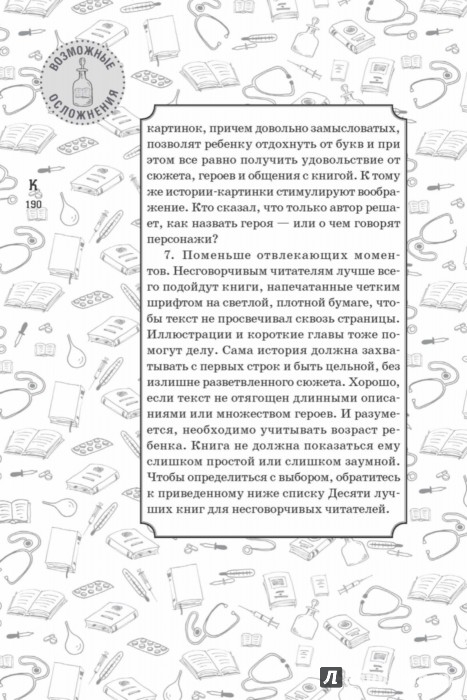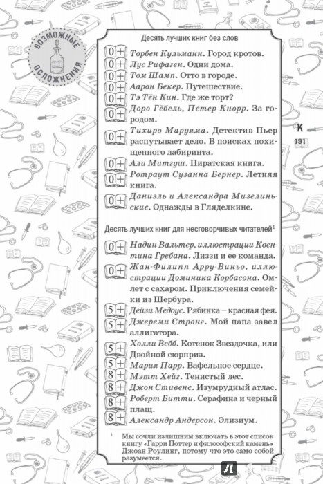 Выбор книги для ребенка - дело слишком важное, чтобы положиться на волю случая. Опытные библиотерапевты Элла Берту и Сьюзен Элдеркин создали своеобразный "литературный лечебник", чтобы помочь неравнодушным мамам, папам, бабушкам и дедушкам находить для детей те самые книги. Этот оригинальный медицинский справочник предлагает "книжную микстуру" практически для любого недуга - будь то аллергия, запор, боязнь подкроватных монстров, интернет-зависимость, развод родителей, переживания из-за переезда или разлука с друзьями... Среди лечебных средств - и хорошо знакомая классика, и новинки мировой детской и юношеской литературы. Незаменимая книга для родителей, которые любят читать и хотят привить эту любовь своим детям.