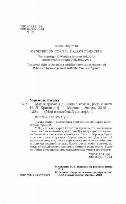 Серия: Мой волшебный единорог Год выпуска: 2018 Страниц: 128 Тип обложки: 7Б - твердая (плотная бумага или картон) Оформление: Частичная лакировка Иллюстрации: Черно-белые Масса: 242 г Размеры: 208x132x12 мм Наличие: Ограничено