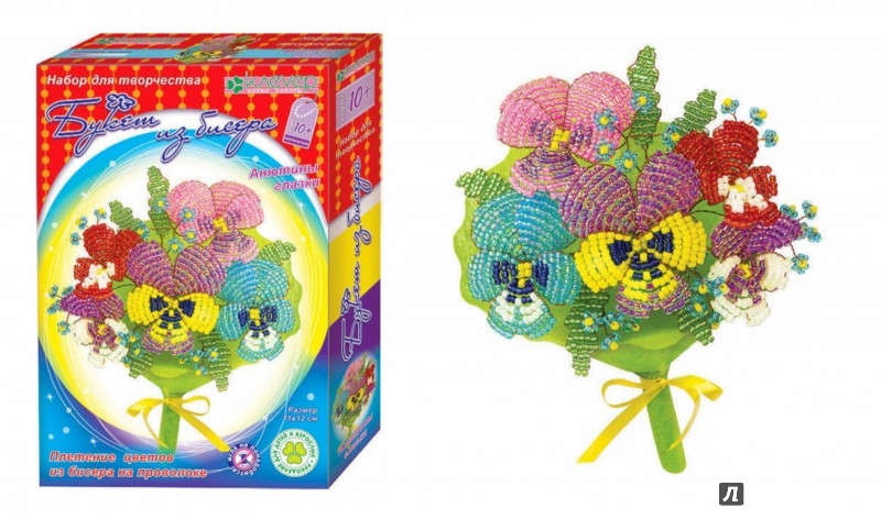 Иллюстрации к "Набор для творчества. Букет из бисера Анютины глазки"