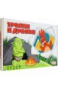 Большое поле с нарисованными троллями на котором стоит деревянная фигурка дракона. Кидаешь деревянный кубик с цветными гранями....