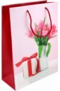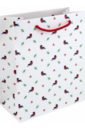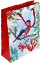 Стильный подарочный пакет с природным паттерном, состоящим из снегирей, зеленых веточек и красных ягод, подойдёт для эффектного...
