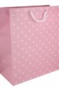 Большой и вместительный нежно-розовый пакет в классический белый горох, размер L. Позволит упаковать объемный подарок, сувенирный...