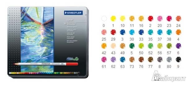 Иллюстрации к "Карандаши акварельные 36 цветов "Karat Aquarell", в металлической коробке"