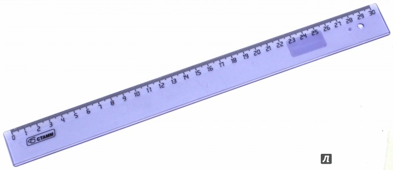 Линейка. Длина 30 см. Материал: пластмасса. Прозрачная, тонированная. Сделано в России.