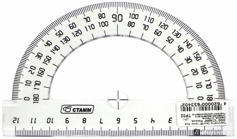 Иллюстрации к "Транспортир 180° / 12 см пластмассовый прозрачный (ТР32)"