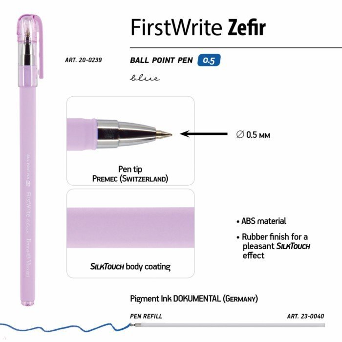 ![]() Ручка шариковая "FirstWrite. Zefir" (0.5 мм, синяя, 4 вида) (20-0239)