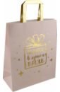 Пакет из крафт-бумаги "Подарок" с золотым тиснением для сувенирной продукции, с шириной основания 26 см, плотность бумаги 120...